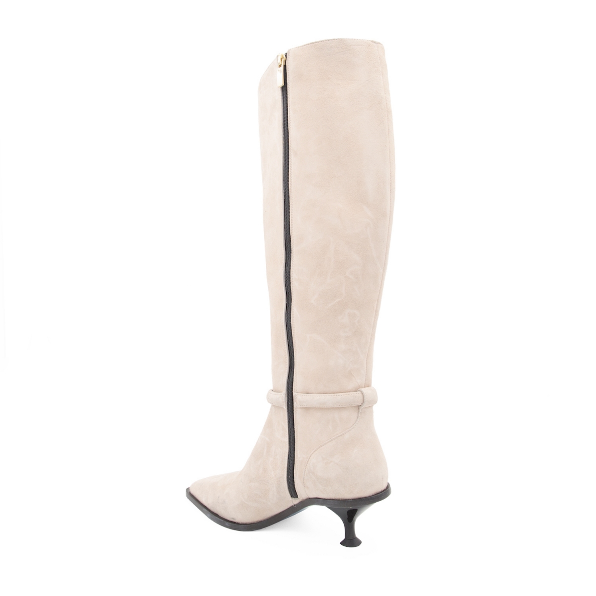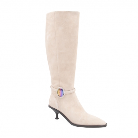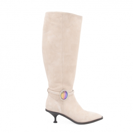 Rose boot in a beautiful suede with a kitten heel that is extremely trendy this winter with a surprise effect given by the new accessory that recalls the colors of dawn, to shine until the morning. The Diana boot mixes the strength of a shape with strong and trendy lines with the delicacy of the finest materials that distinguish us such as the very soft suede that adapts to each leg, the toe and our Valentina Rangoni cameo for a wow effect at every step. Ideal for any look this autumn winter, it is a boot with a super strong mood to wear with tight trousers, skirts or knee-length dresses.