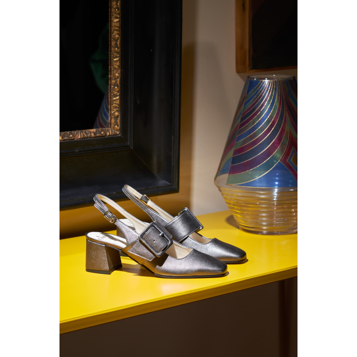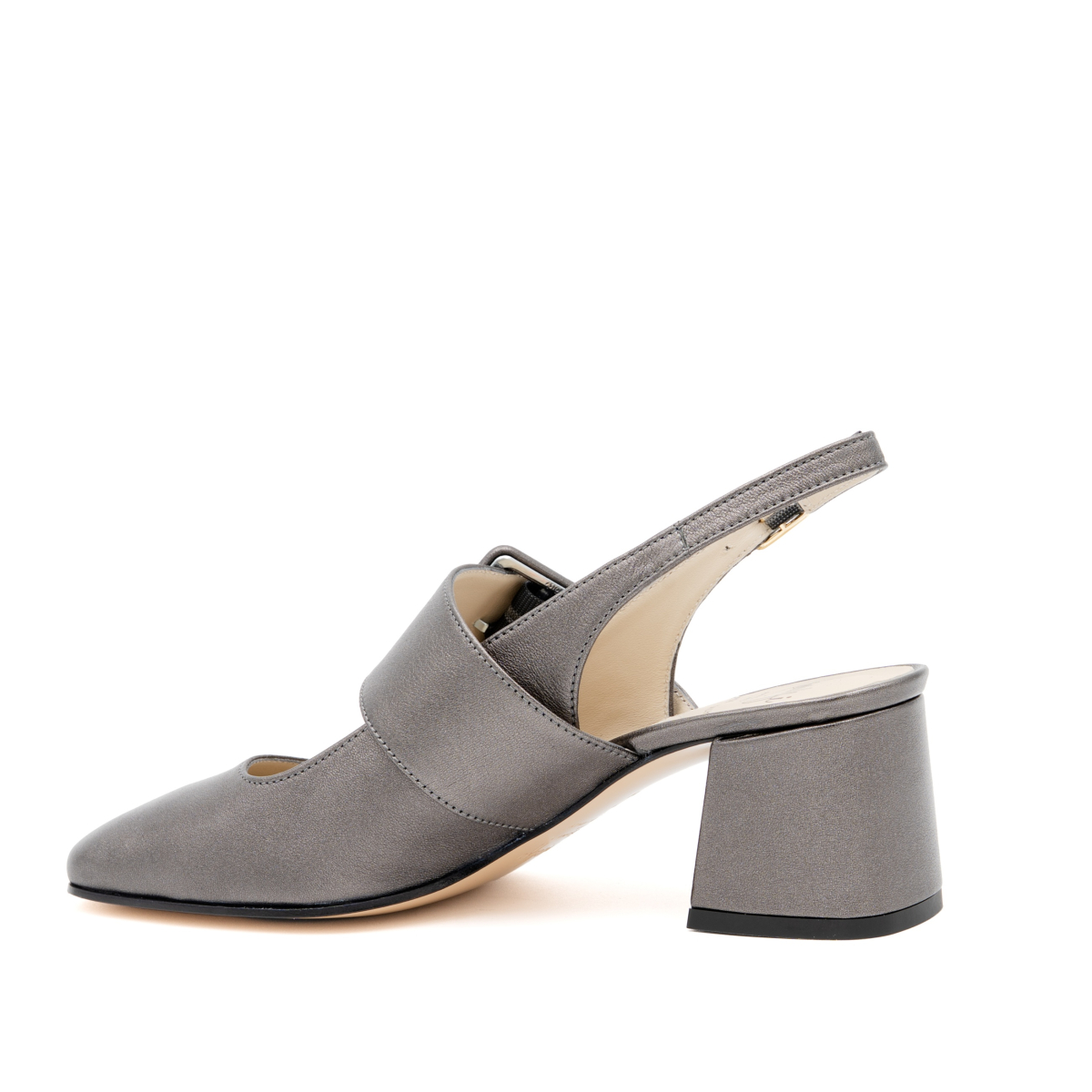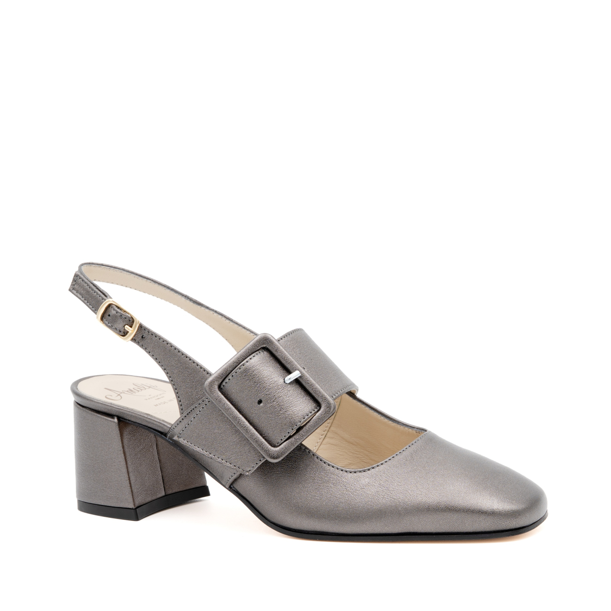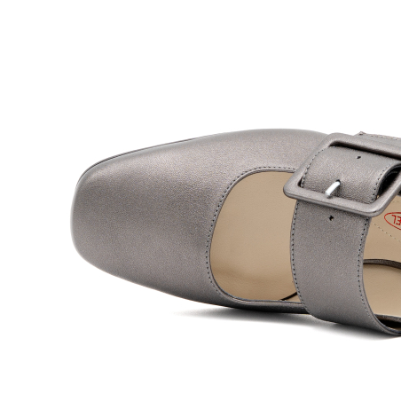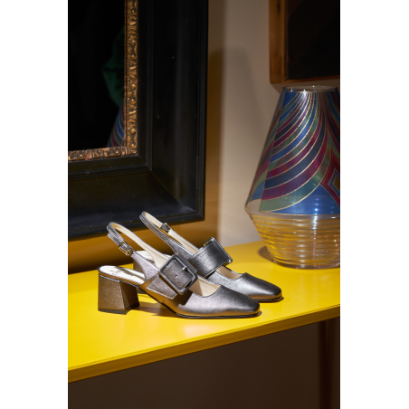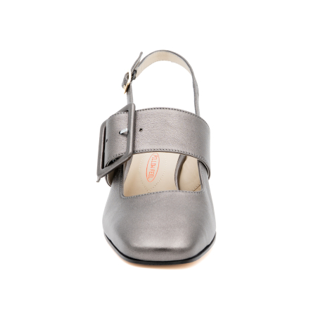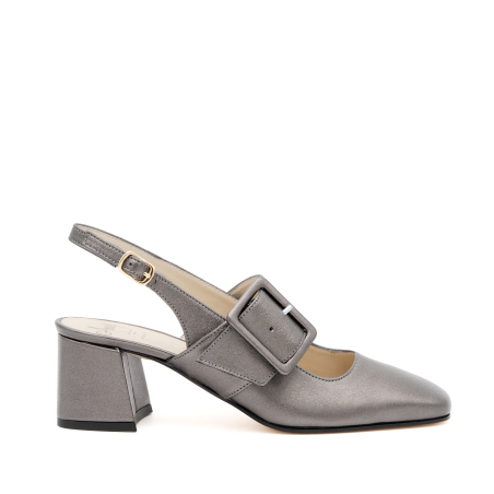 Selva are elegant slingback pumps with wide heels in soft semi metallic leather with a classic line. Comfortable and wide heel. Decorated with a front leather band with a large semi-gloss leather buckle for a truly original and very comfortable shoe. Patented Pillow Feel insole for extreme comfort. Leather sole with non-slip rubber insert. The new pump that you will use for all occasions, from the office to the aperitif, without ever giving up comfort and convenience.