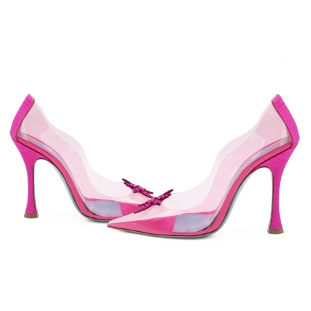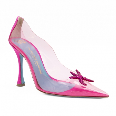 The new Valentina Rangoni décolleté: brilliant, with a clean and extremely sensual design, fun in the transparent version in colored vinyl with a splendid crystal decoration reproducing a starfish. Without ever losing the unmistakable comfort that distinguishes all our shoes.