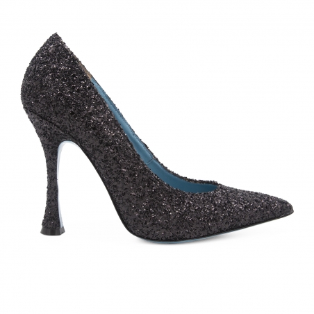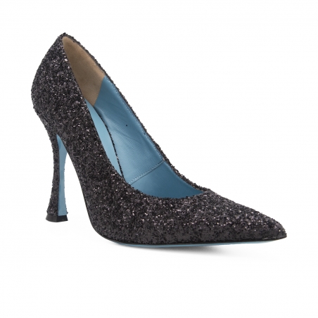 The new Valentina Rangoni decollété: bright, with a clean and extremely sensual design, fun in the all glitter version of bright black. Without ever losing the unmistakable comfort that distinguishes all our shoes.