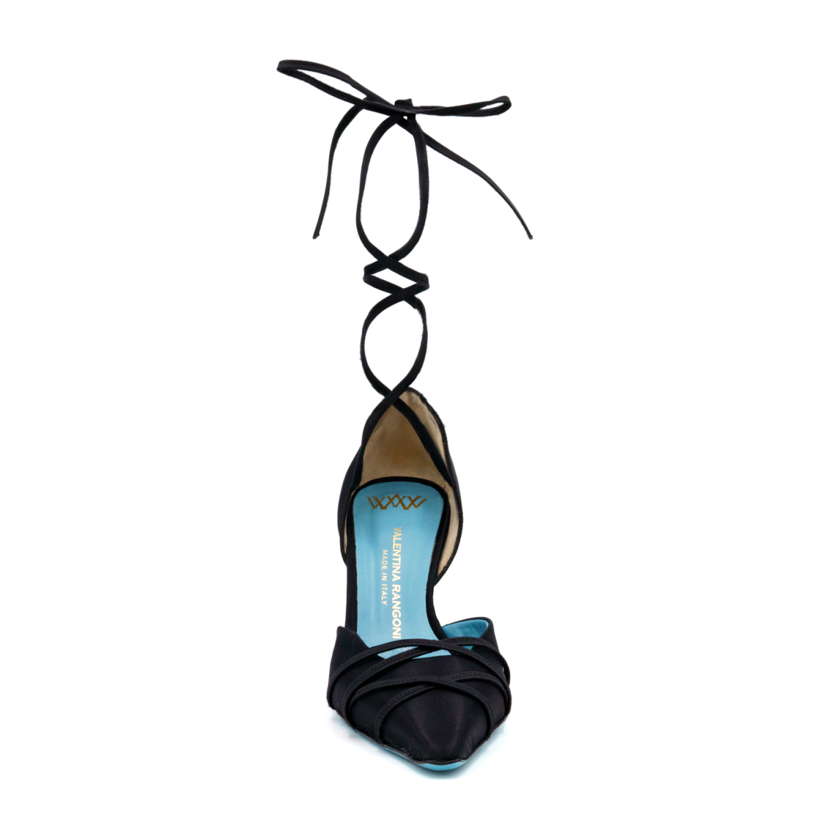 Our Febe pumps are the new 2025 addition to our Atelier: the Valentina Rangoni ceremony collection! These pumps are the perfect model for your ceremonies, with the new increasingly comfortable and stable square heel, the modern tapered toe suitable for any dress, and our unmistakable double memory foam insole! The Febe are made of an Italian satin fabric with two thin laces that start from the toe and intertwine up to the ankle!
