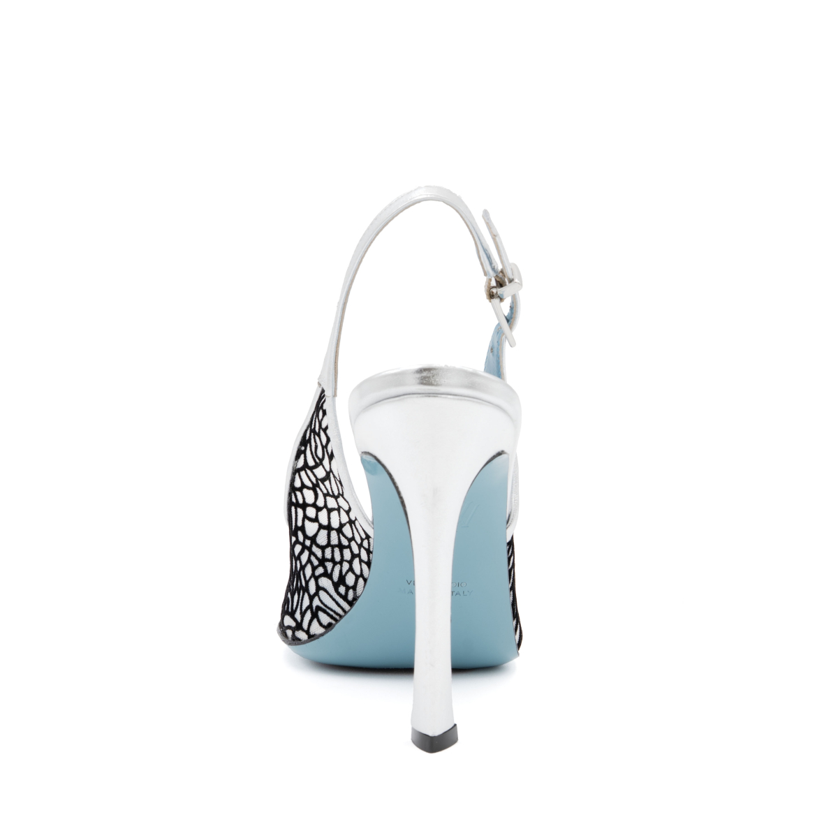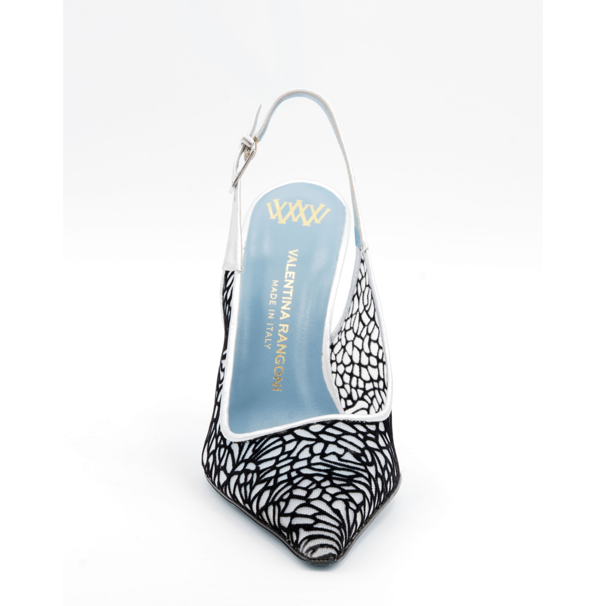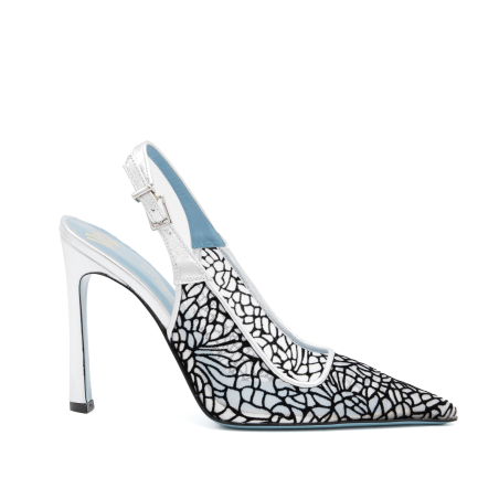 Rugiada is the new iconic pump designed by our creative director Valentina Rangoni: a clean and extremely sensual design, with a straight stiletto heel and our consistently high-quality leathers. Here, our iconic 10-centimeter heel is embellished with a three-dimensional mesh upper decorated with velvet from a top-quality Italian brand, soft and comfortable on the foot. The memory foam insole maintains the unmistakable comfort that distinguishes all our shoes.