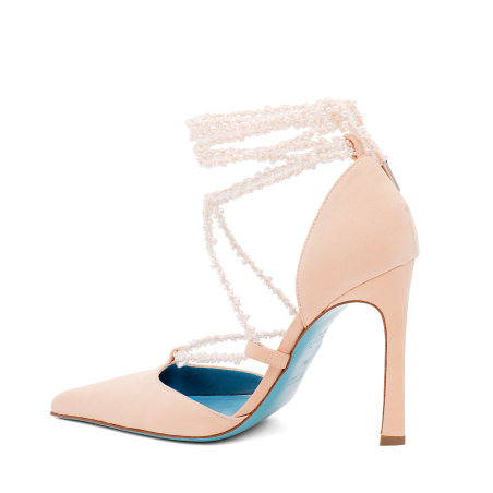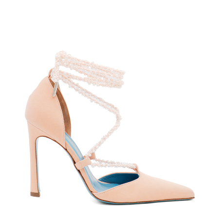 The Ramses pump embodies the timeless elegance of ancient Egypt. Crafted from soft suede, this pump captivates with its 10 cm heel, ensuring comfort and style. The most exclusive detail is the beaded lace that delicately crisscrosses the instep, creating a sophisticated, enveloping effect all the way up to the ankle. An accessory that transforms every step into a statement of grace and refinement, perfect for those seeking a touch of conscious luxury.
