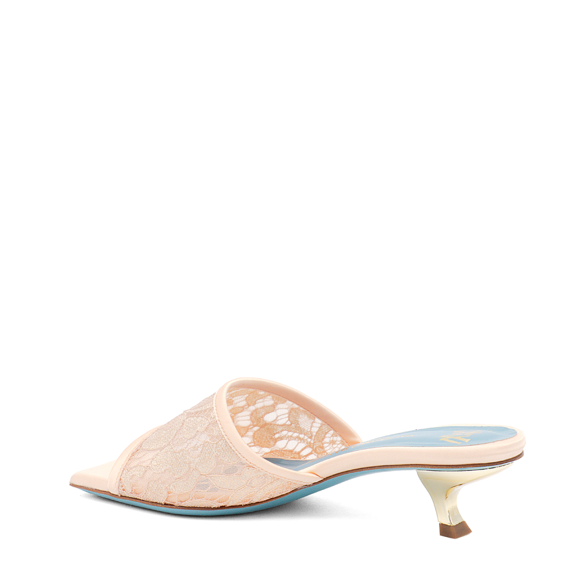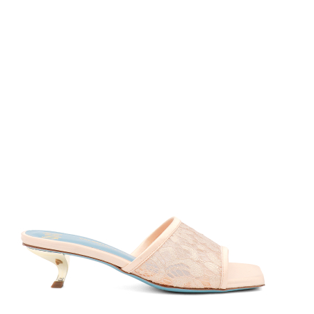 Elegant mule sandal in soft lace fabric with shiny details Italian with our new trendy metallic "comma" kitten heel for a modern and comfortable look. The heel gives stability and is perfect for many occasions, even stronger comfort also from the memory foam insole for extreme comfort. Leather sole with non-slip rubber insert. Ideal for a dinner, an aperitif or for any daily occasion. Handcrafted and top quality product.
