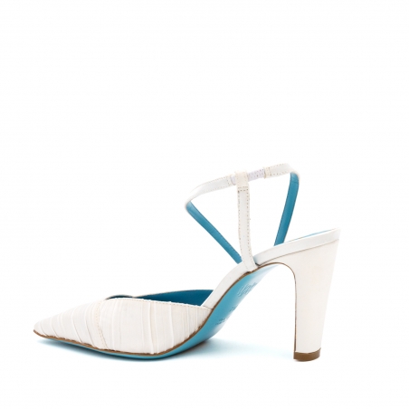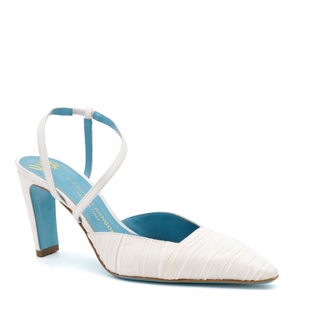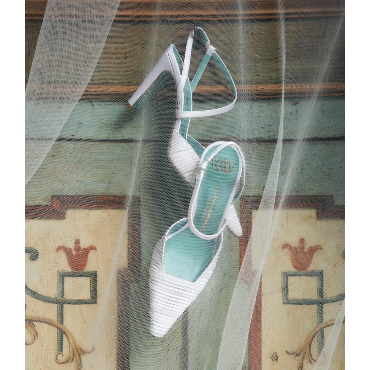 Our Fidia pumps are the new 2025 addition to our Atelier: Valentina Rangoni's Bridal collection! These pumps are the perfect model for your ceremonies, with the new increasingly comfortable and stable square heel, the modern tapered tip suitable for any dress, and our unmistakable double memory foam insole! The Fidia are made of an Italian pleated satin fabric that recalls a Doric capital!