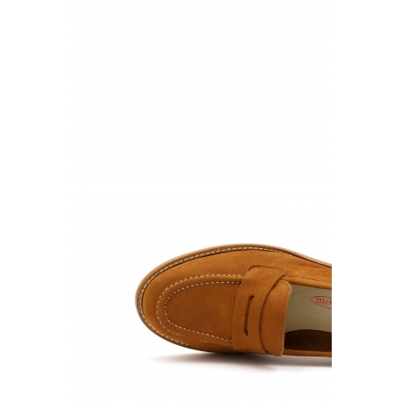 Abele è un mocassino in pelle nabuk color cognac con punta dal look elegante e moderno della nostra linea Amalfi.