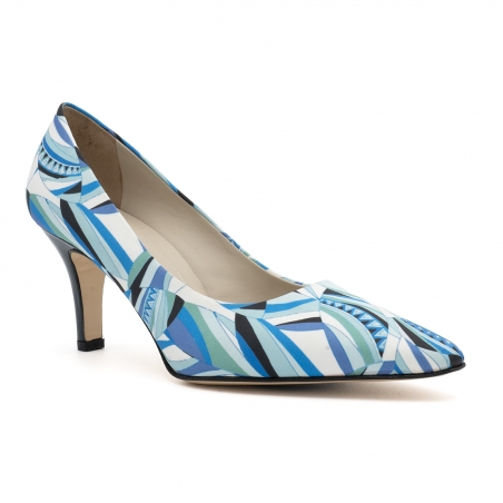 Elegante e sofisticata decollété realizzata con un bellissimo tessuto geometrico sui toni del blu. Le nostre Idea sono davvero il must have di questa stagione estiva per lo stile bonton ed i toni allegri della tomaia che le caratterizzano. La nostra graziosa décolleté a punta è realizzata a Firenze dai nostri artigiani con un sottopiede imbottito in memory foam per il massimo comfort anche sui tacchi.