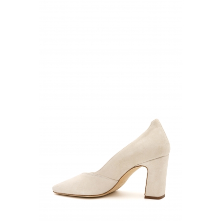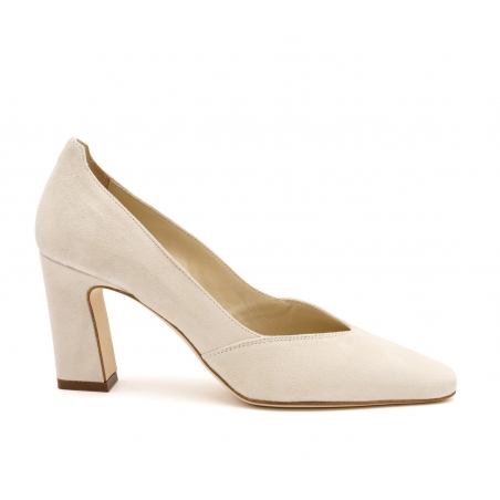 Elegante décolleté con tacco largo in morbido camoscio dalla linea essenziale.