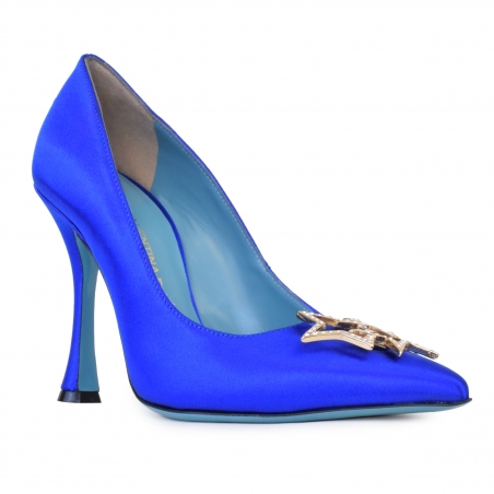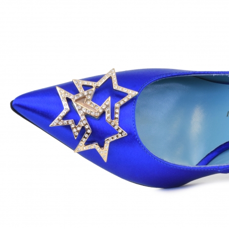 La nuova decollété Valentina Rangoni: brillante, dal design pulito ed estremamente sensuale, divertente nella versione in un raso di grande qualità e decorate in punta da un accessorio composto da tre stelle ricoperte di cristalli. Senza mai perdere l'inconfondibile comodità che contraddistingue tute le nostre scarpe.