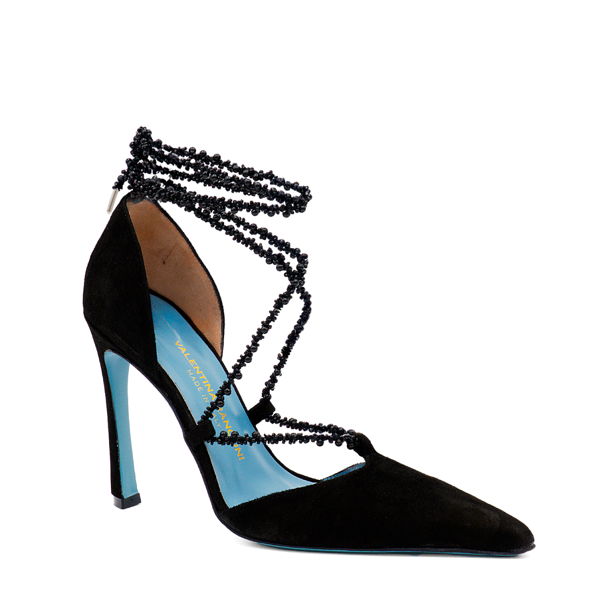 La décolleté Ramses incarna l'eleganza senza tempo dell'antico Egitto. Realizzata in morbido camoscio, questa pump affascina con il suo tacco di 10 cm che garantisce comfort e stile. Il dettaglio più esclusivo è il laccio in perline che si incrocia delicatamente sul collo del piede, creando un effetto sofisticato e avvolgente fino alla caviglia. Un accessorio che trasforma ogni passo in un'affermazione di grazia e raffinatezza, perfetto per chi desidera un tocco di lusso consapevole.