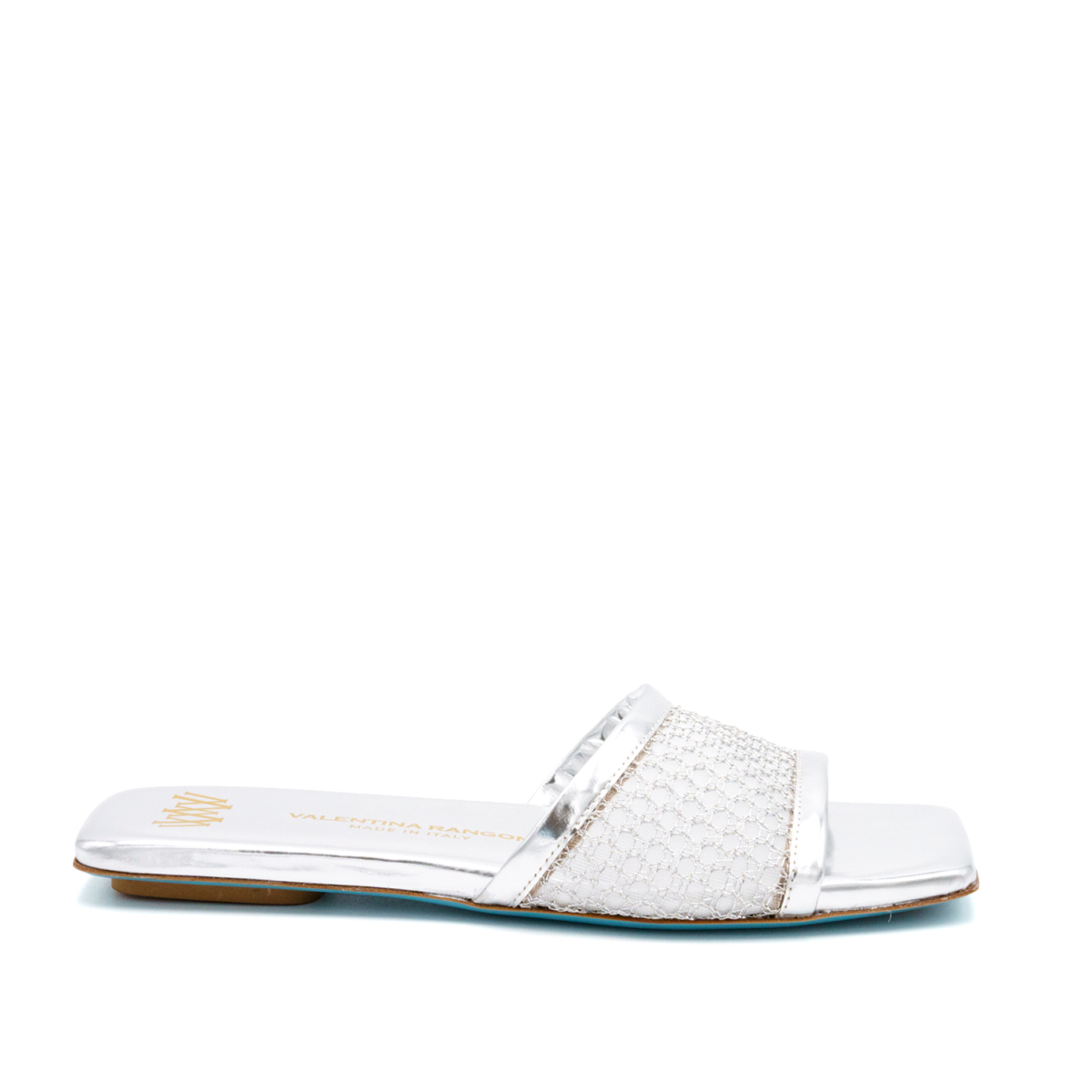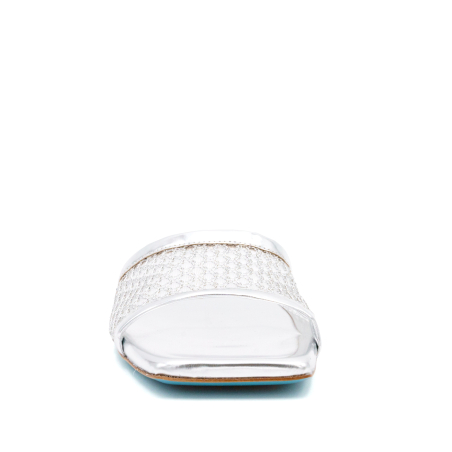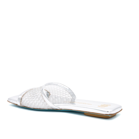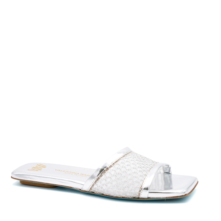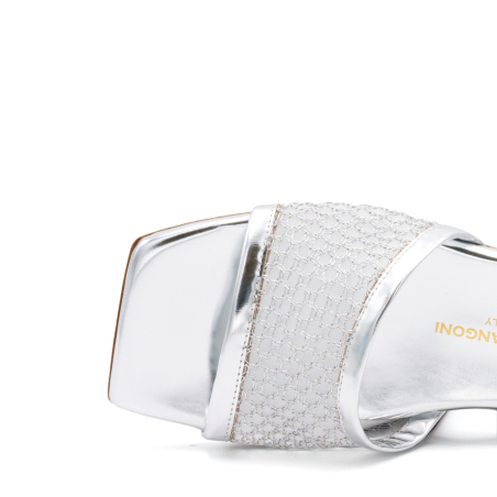 Elegante sandalo ciabattina in morbido tessuto a rete mesh con dettagli metallici brillanti italiano per un look moderno e comodo. Il mix tra tessuto metallico e la pelle italiana sempre metallizzata rendono questa ciabattina made in Italy molto versatile e adatta per tantissime occasioni, comodità ancora più forte anche alla soletta in memory foam per un comfort estremo. Suola in cuoio con inserto in gomma antiscivolo. Ideale per una cena, un aperitivo o per qualsiasi occasione giornaliera. Prodotto artigianale e di altissima qualità.