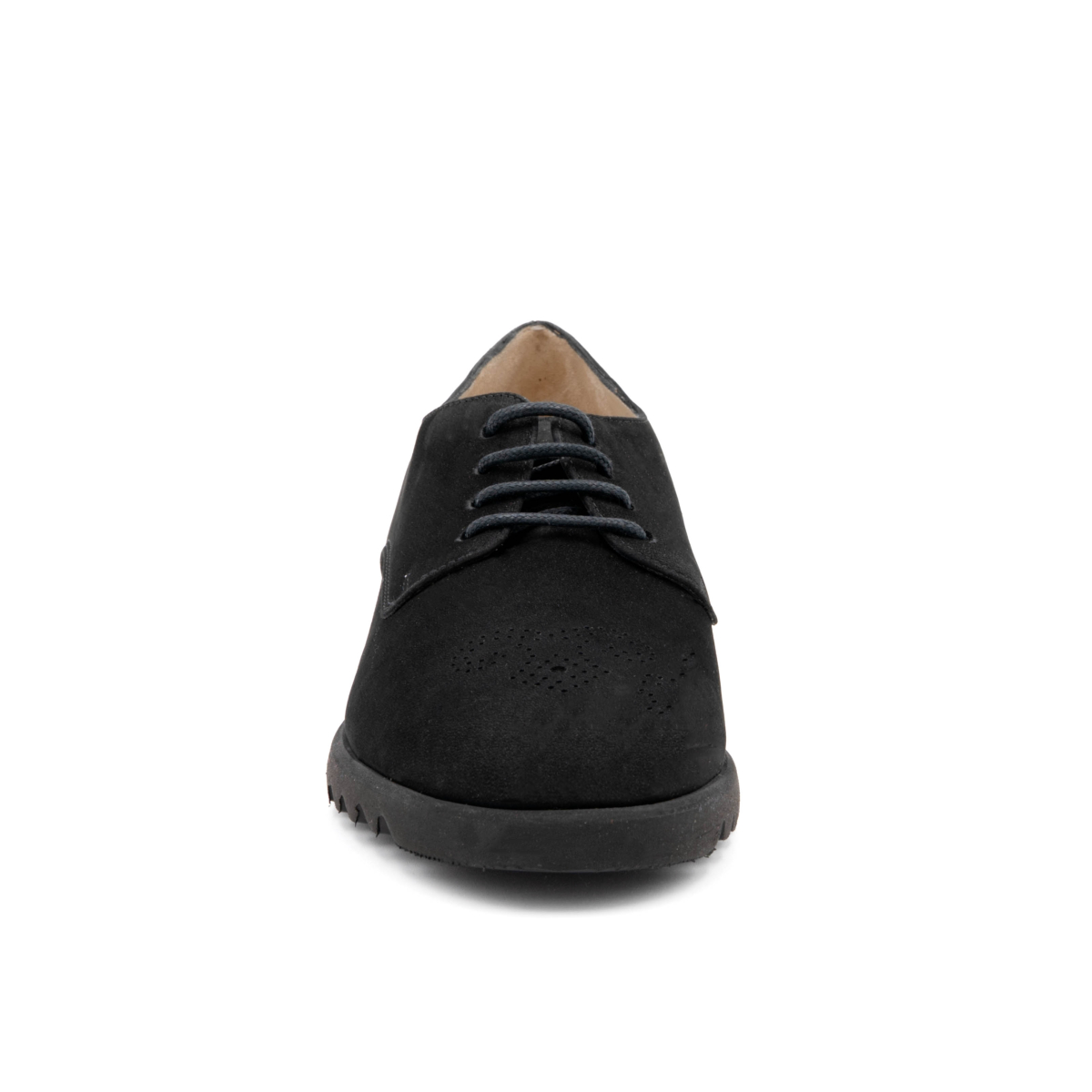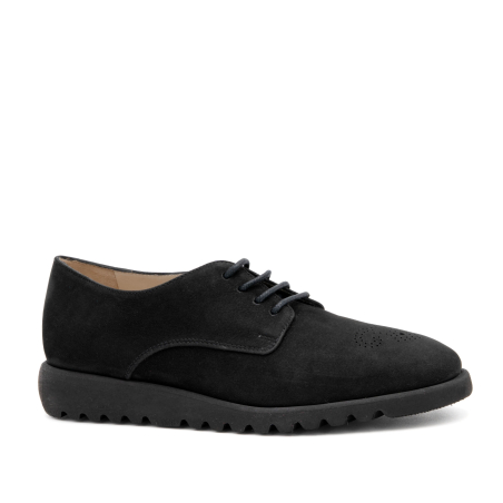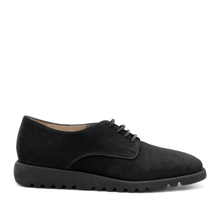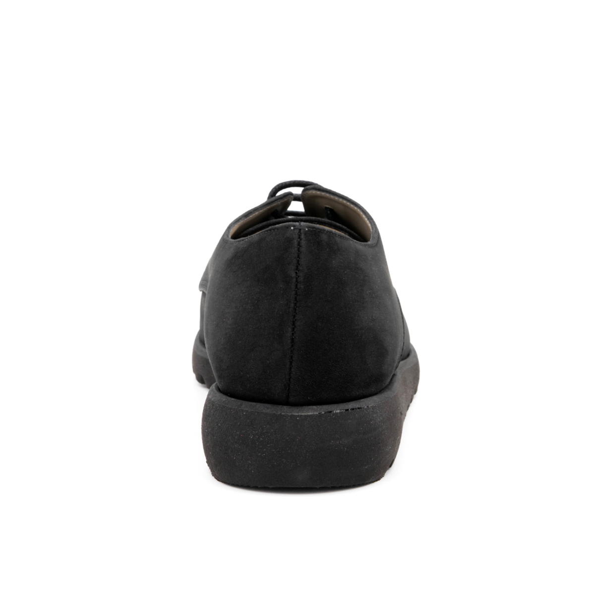 Scarpa stringata in camoscio nero con stringhe per un comfort senza uguali.