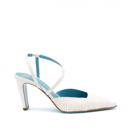 Le nostre décolleté Fidia rappresentano la novità del 2026 del nostro Atelier: la collezione Sposa di Valentina Rangoni! Queste décolleté rappresentano il modello perfetto per le tue cerimonie, con il nuovo tacco squadrato sempre più comodo e stabile, la punta affusolata moderna e adatta a qualsiasi vestito, e la nostra inconfondibile soletta in doppio memory foam! Le Fidia sono realizzate in un tessuto italiano di raso plissè che ricordano un capitello dorico!