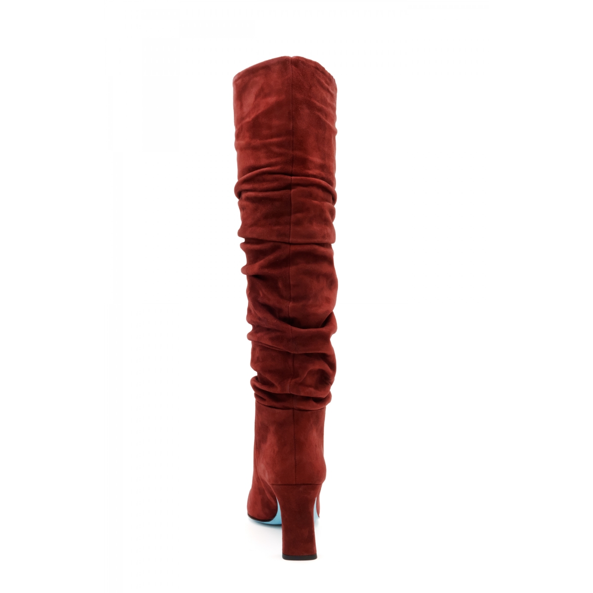 Stivale bordeaux in una bellissima pelle scamosciata con un tacco squadrato estremamente in trend questo inverno, con effetto "grinza".